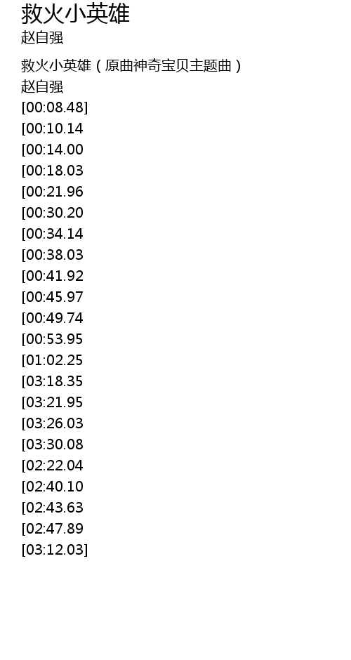 | [00:01.06] | 救火小英雄(原曲神奇宝贝主题曲) |