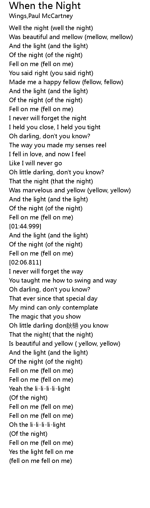 | [00:22.060] | Well the night (well the night) |