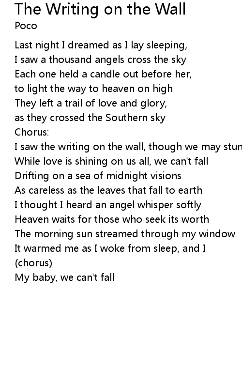 I saw the writing on the wall, though we may stumble, we can't fall |