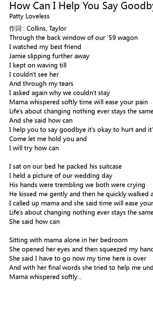 | Song | How Can I Help You Say Goodbye |