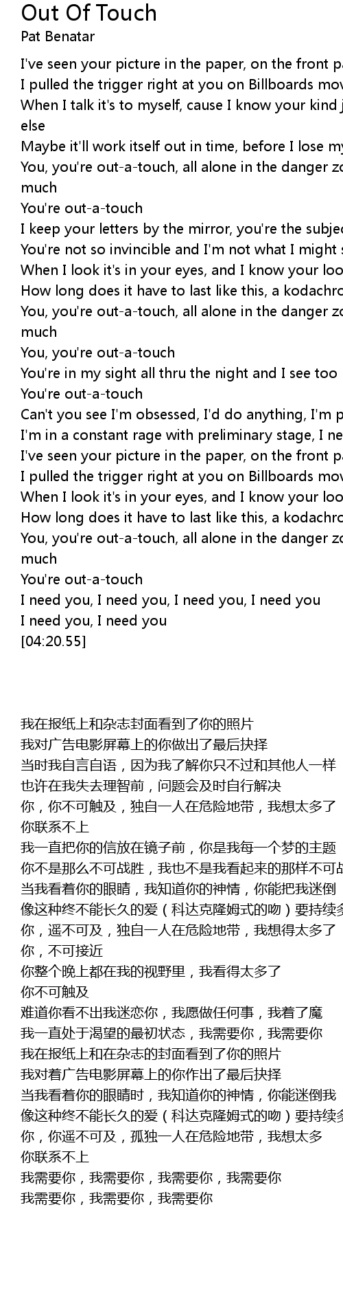 You, you're out-a-touch, all alone in the danger zone and I think too much |