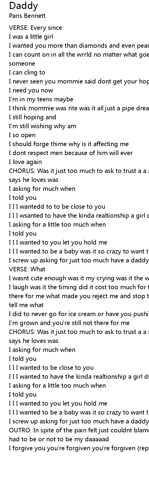 I screw up asking for just too much have a daddy (repeat 7x) |