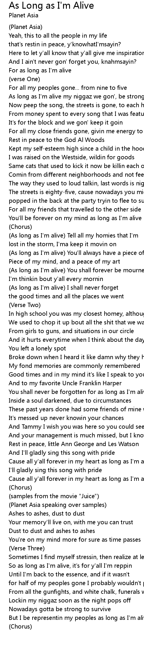Cause all y'all forever in my heart as long as I'm alive, you hear me?