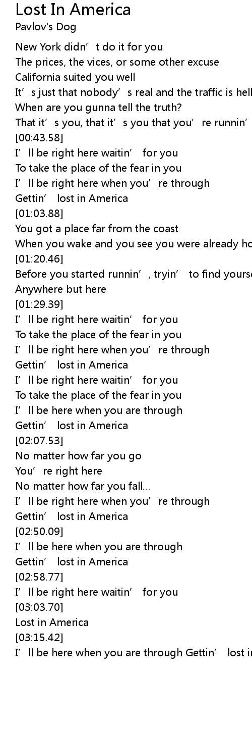 | [01:47.34] | Gettin’ lost in America |