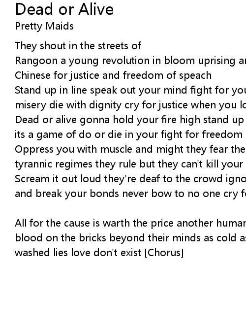 Dead or alive gonna hold your fire high stand up for your reasons dead or alive its a game of do or die in your fight for freedom |