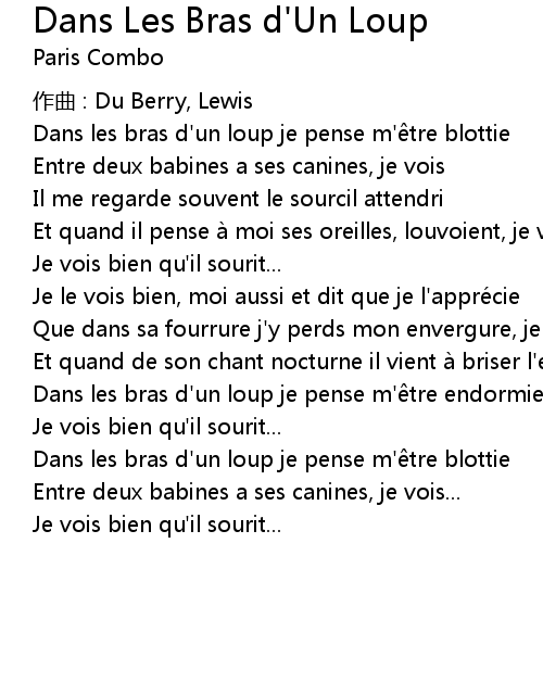 | Dans les bras d' un loup je pense m' tre blottie | |