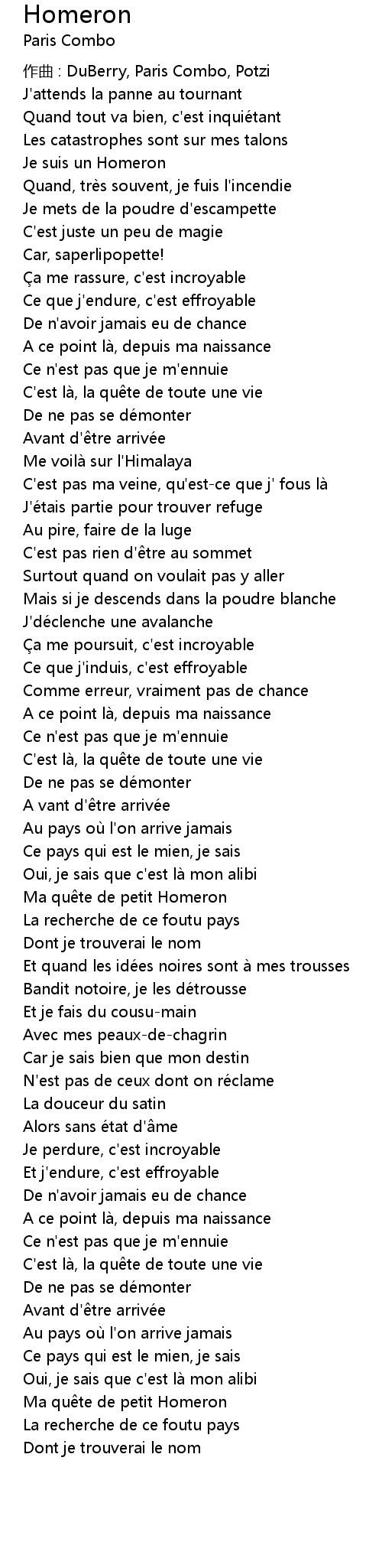 | 作曲 : DuBerry, Paris Combo, Potzi | |