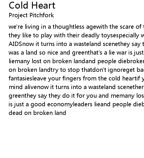 AIDSnow it turns into a wasteland scenethey say they do it for you and methere was a land so nice and greenthat's a lie war is just a good economyleaders liemany lost on broken landand people diebroken arms and bloody handsmany dead on broken landtry to stop thatdon't ignoreget back to your dreams and fantasiesleave your fingers from the cold heartif you like to survivekeep your mind alivenow it turns into a wasteland scenethere was a land so nice and greenthey say they do it for you and memany lost on broken landthat's a lie war is just a good economyleaders lieand people diebroken arms and bloody handsmany dead on broken land |