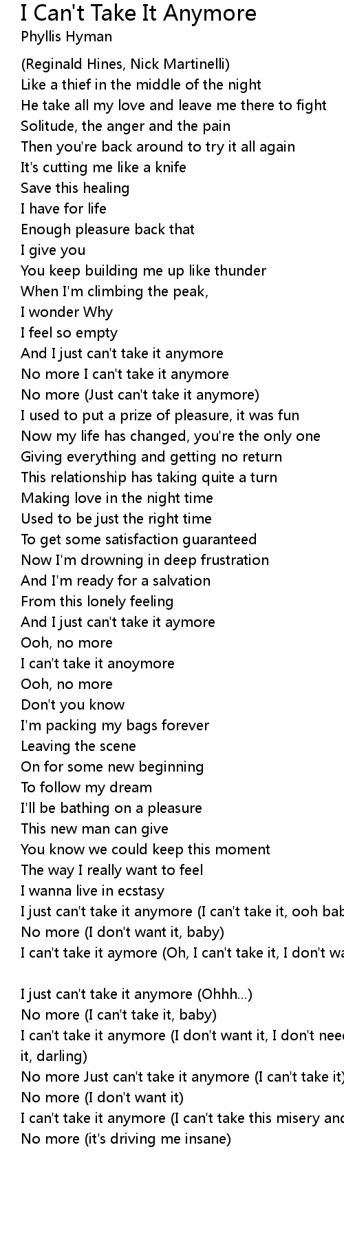 No more Just can't take it anymore (I can't take it) |