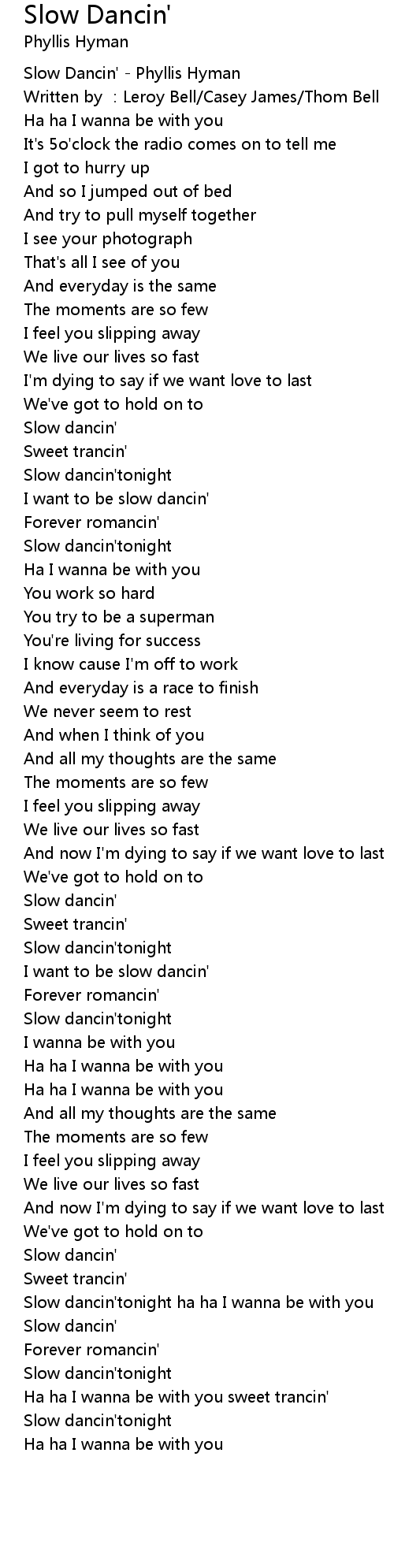 | [00:00.200] | Slow Dancin' - Phyllis Hyman |