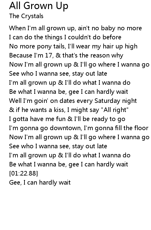I'm all grown up & I'll do what I wanna do |