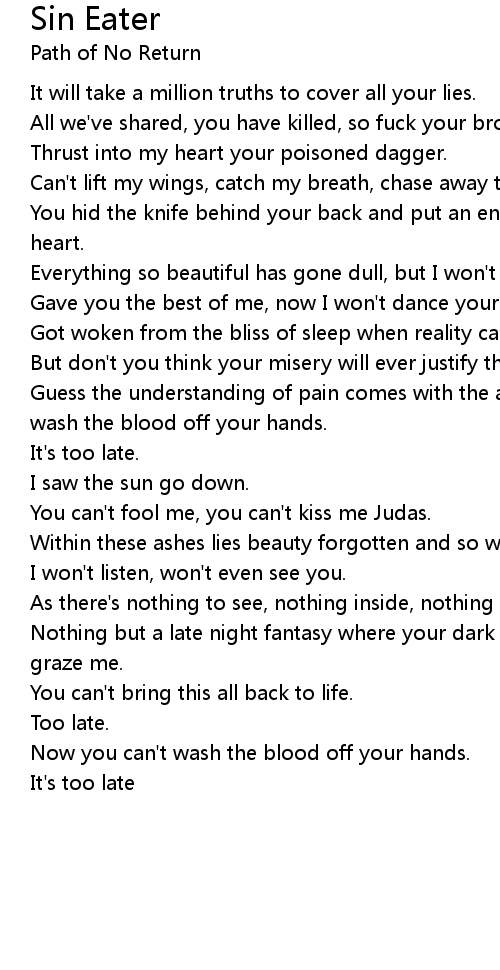 You hid the knife behind your back and put an end to it all, so fuck your broken heart. |