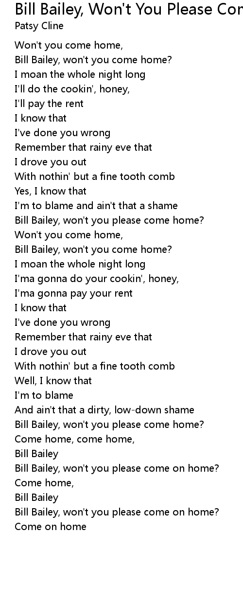 Bill Bailey, won't you come home? |