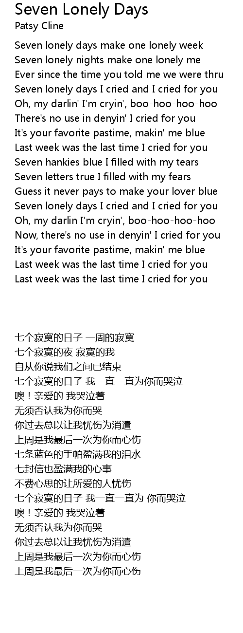Seven lonely days I cried and I cried for you |