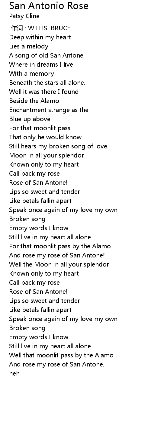 | [01:55.29] | Well that moonlit pass by the Alamo |