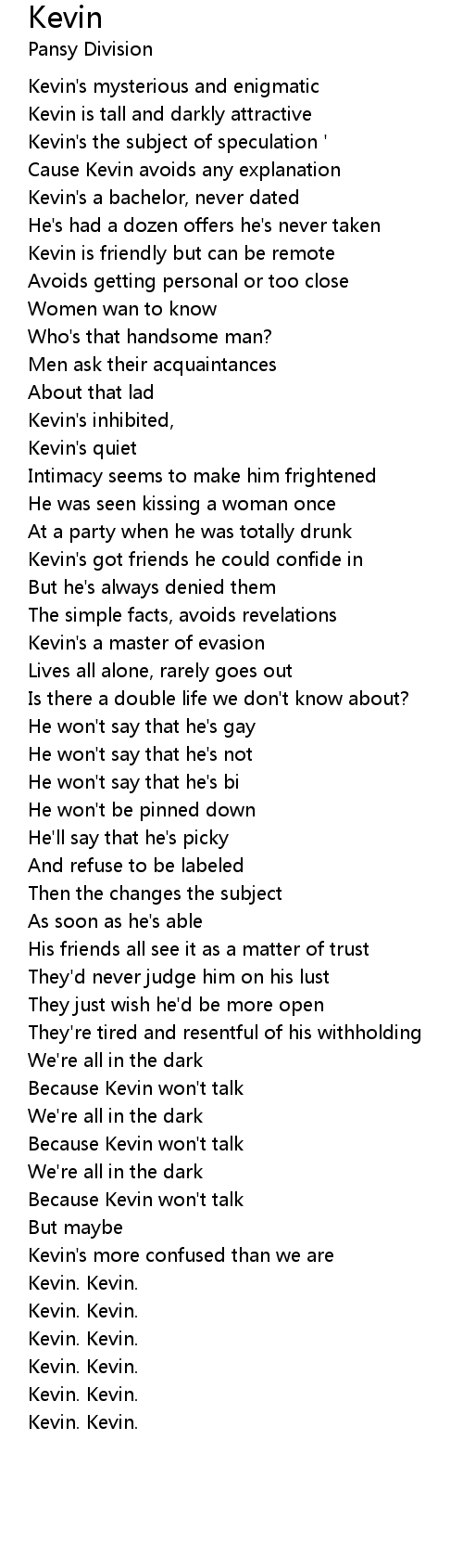 Because Kevin won't talk |