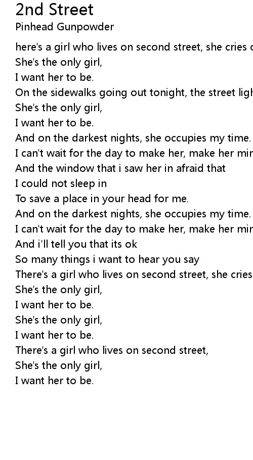 here's a girl who lives on second street, she cries on every time we meet. |