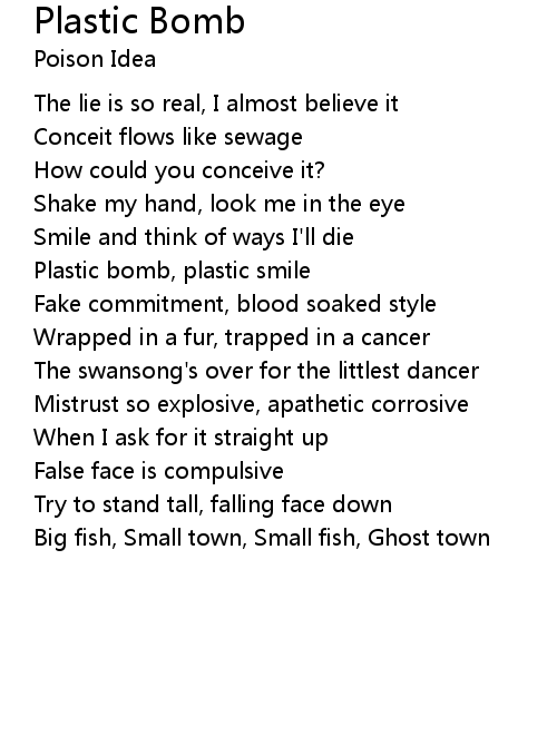 | Plastic bomb, plastic smile | |