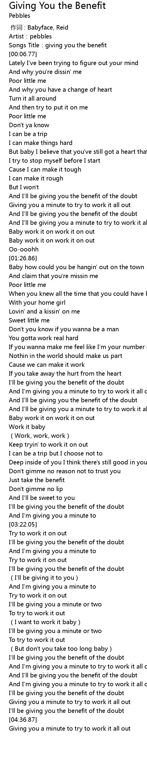 | [01:02.05] | And I' ll be giving you the benefit of the doubt |