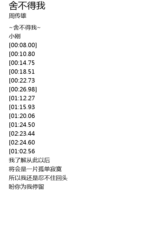 | [02:55.48][02:24.60][01:30.97][00:47.84] | 舍不得舍不得舍不得我 |