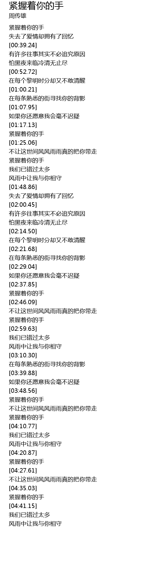 | [01:34.00] | 紧握着你的手 |