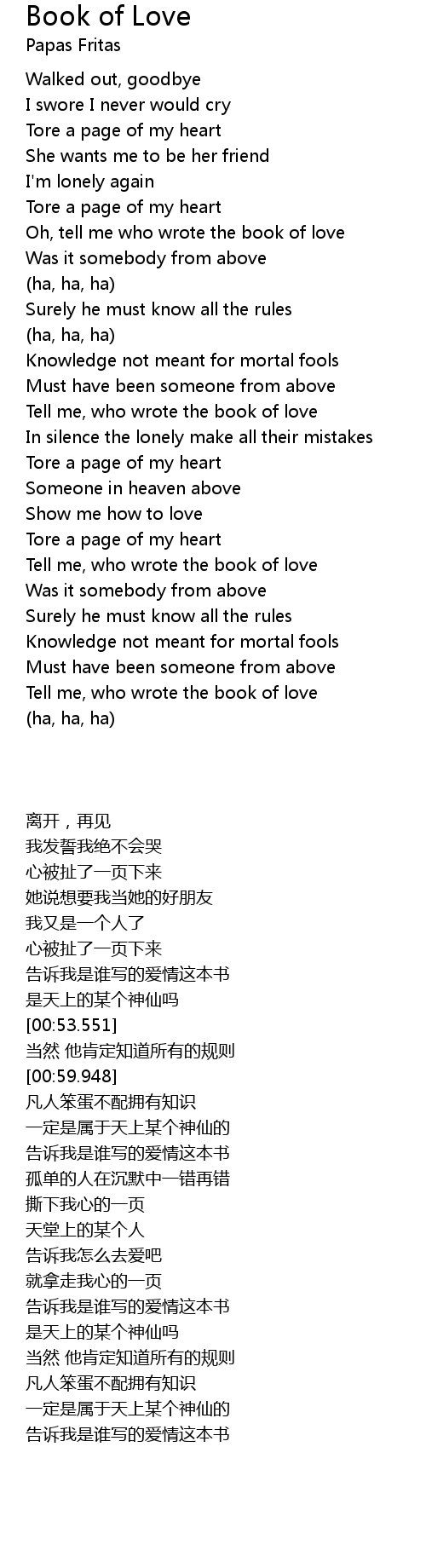 [02:22.025] Tell me, who wrote the book of love