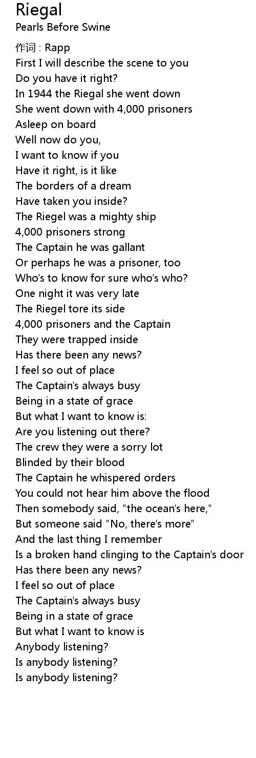 | Song | Riegal |
