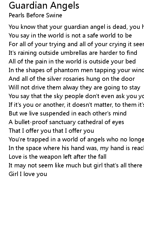 You know that your guardian angel is dead, you have said |