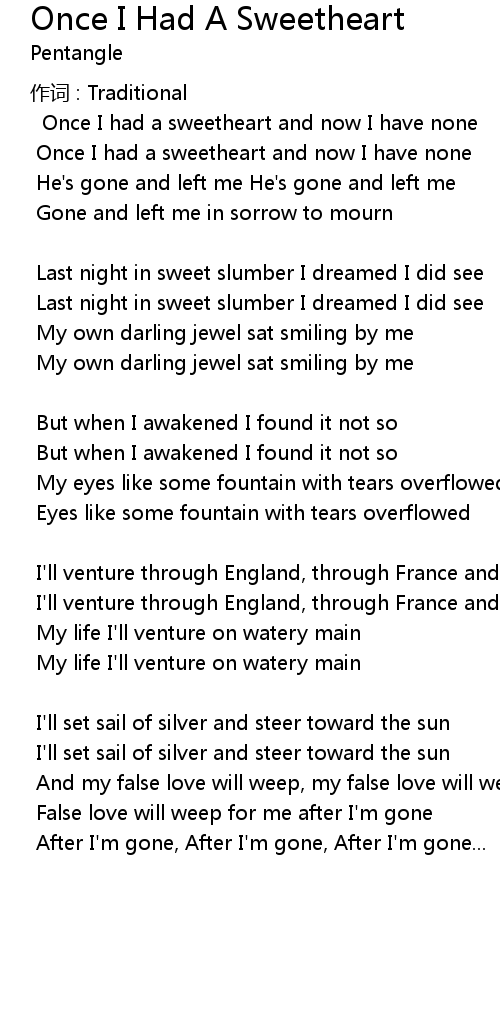 | Once I had a sweetheart and now I have none | |