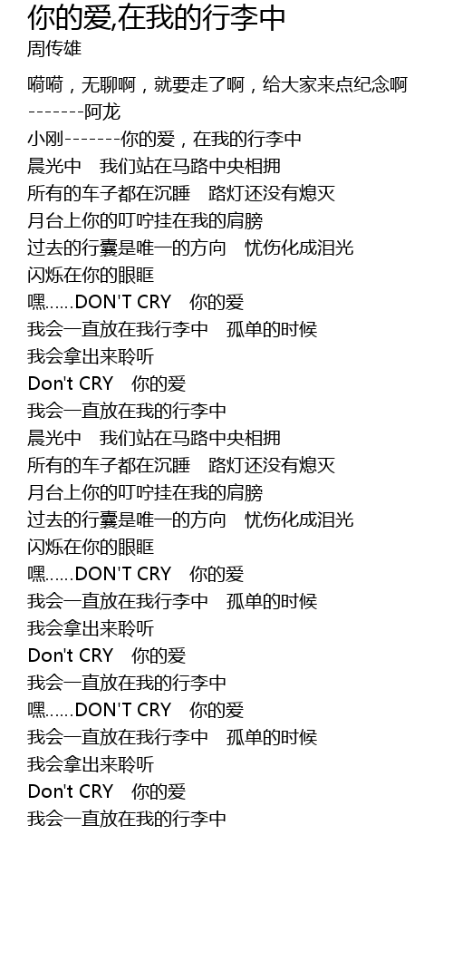 | [03:04.26] | 嘿……DON'T CRY 你的爱 |