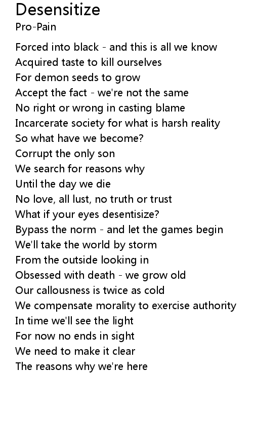| Incarcerate society for what is harsh reality | |