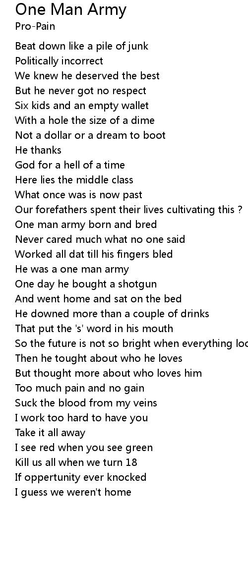 One man army born and bred |