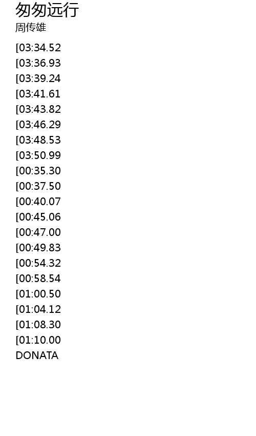 | [03:53.34][03:34.52][03:15.58][02:57.50][02:22.61][01:14.49][00:01.00] | 匆匆远行 |