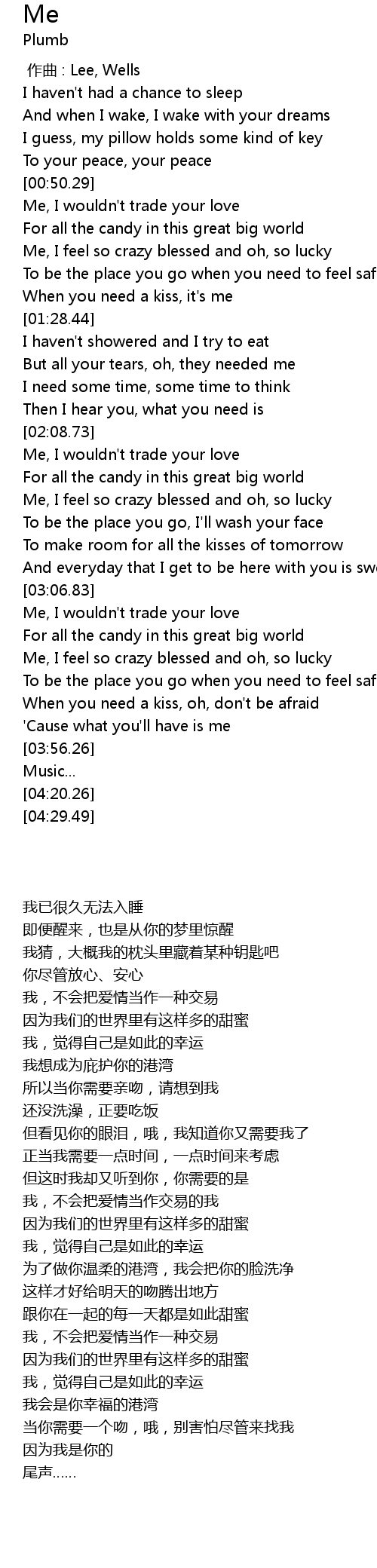 | [01:22.49] | When you need a kiss, it's me |