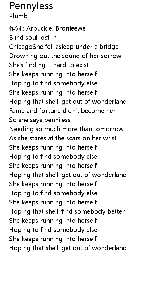 | So she says penniless | |
