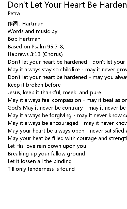 | Don' t let your heart be hardened don' t let your love grow cold | |