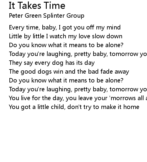 | Song | It Takes Time |