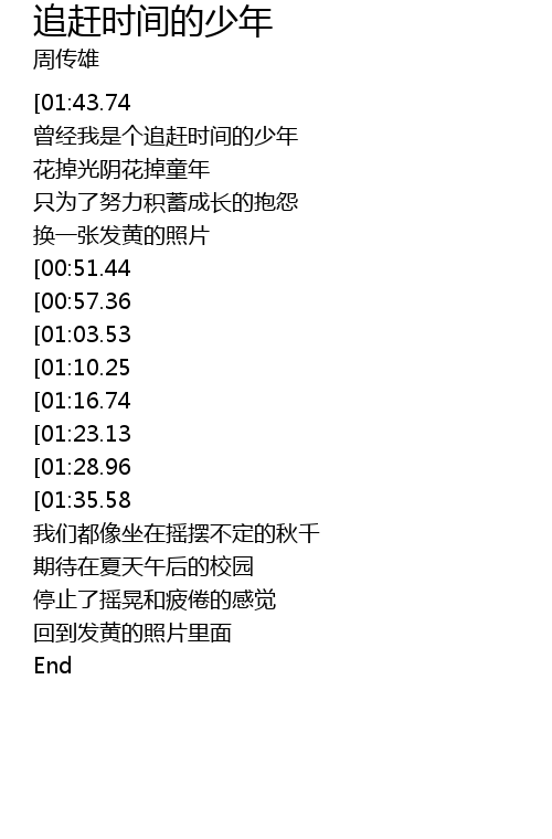 | [00:26.07] | 曾经我是个追赶时间的少年 |