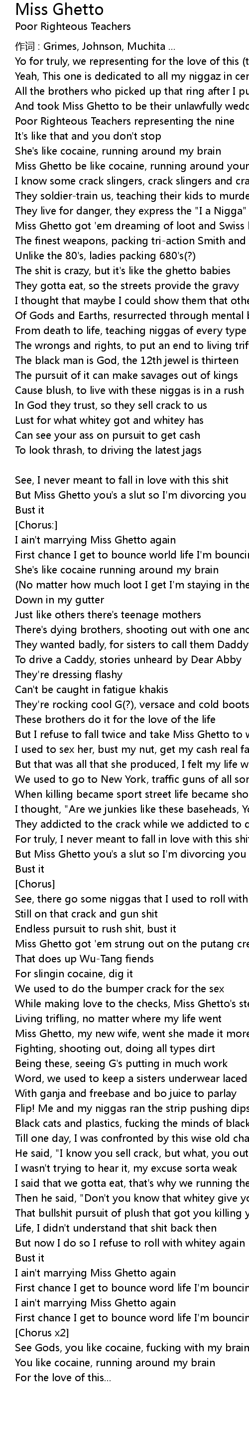 | But Miss Ghetto you's a slut so I'm divorcing you bitch | |