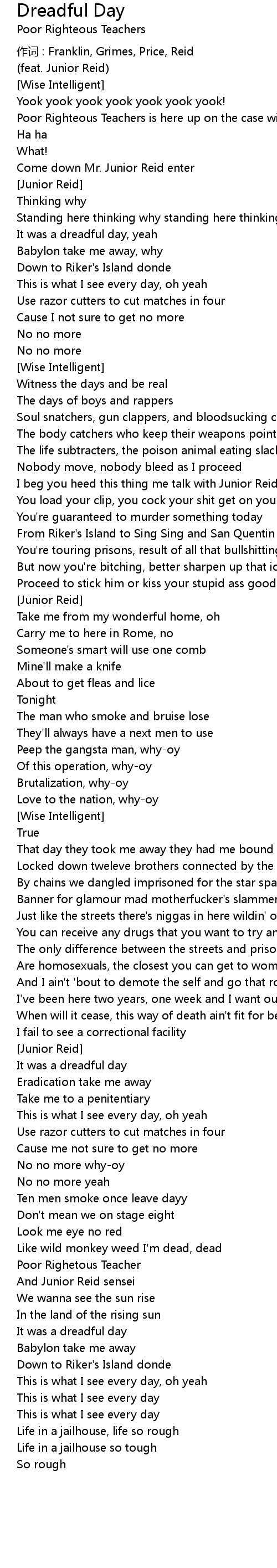 | Poor Righteous Teachers is here up on the case with Mr. Junior Reid | |