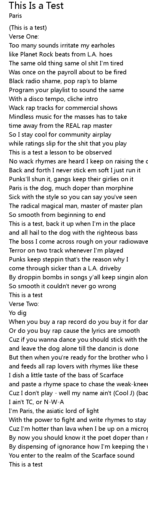 This is a test, back it up when I'm in the place |