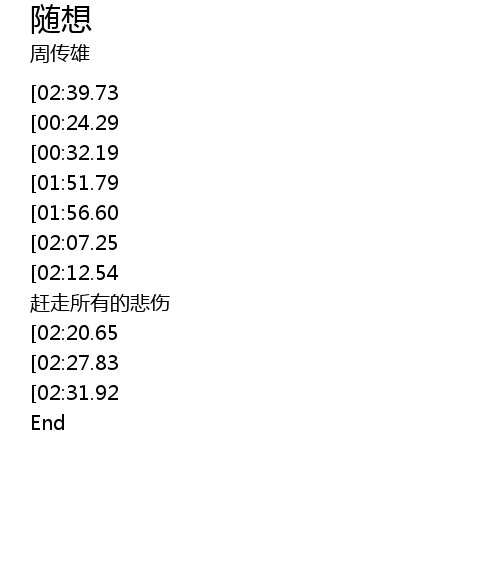 | [03:20.89][02:12.54][01:00.56] | 让那阳光停止我的孤单 赶走所有的悲伤 |