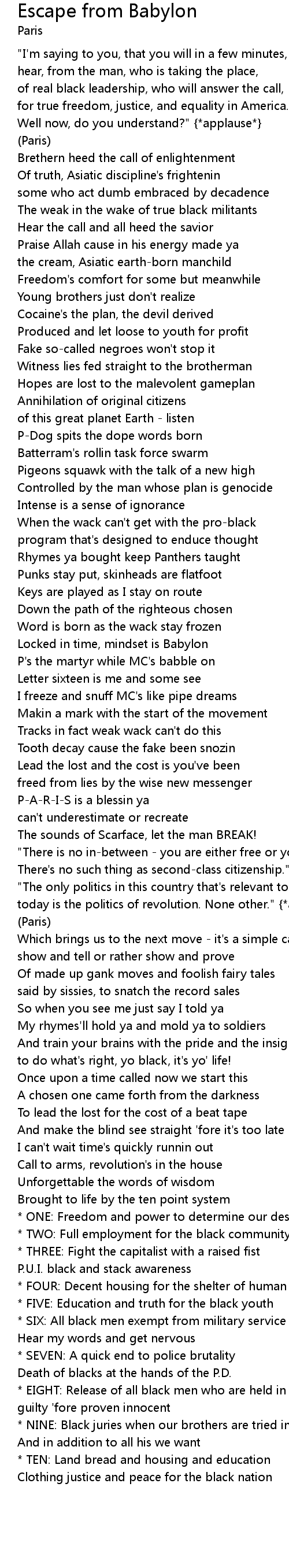 * TEN: Land bread and housing and education |