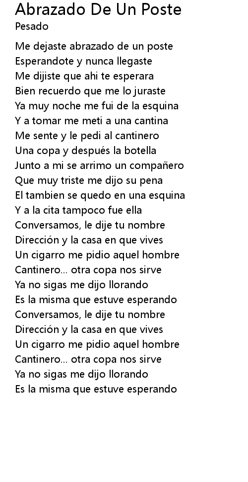 | Song | Abrazado De Un Poste |