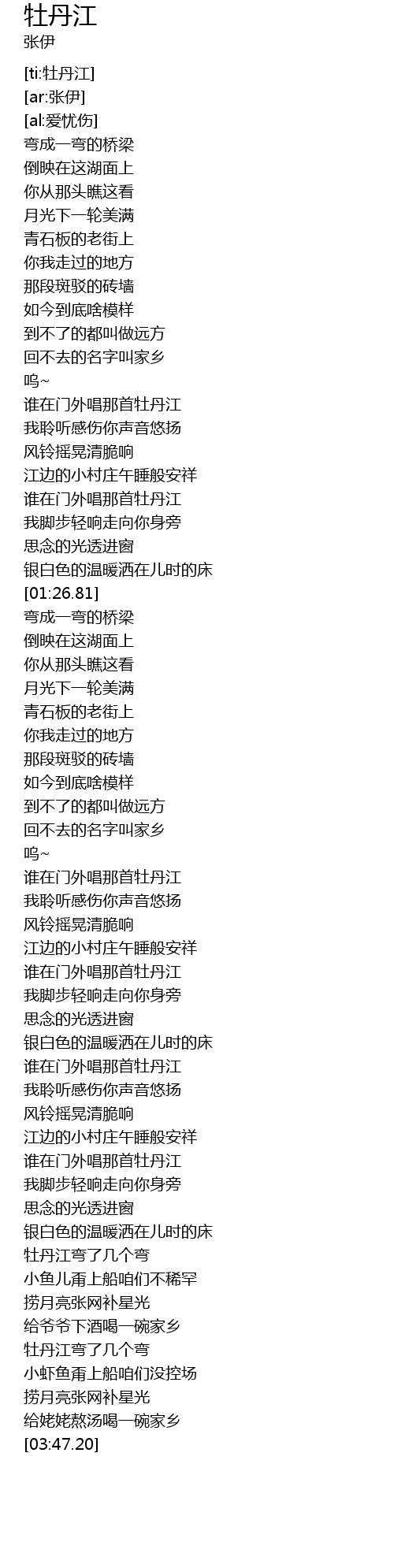 | [03:20.01] | 牡丹江弯了几个弯 |