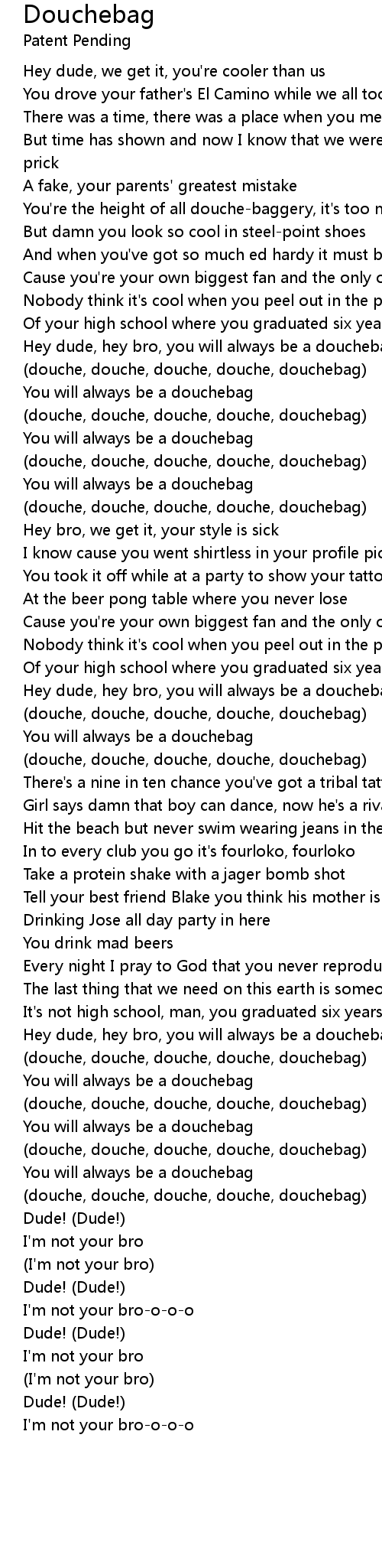 Hey dude, hey bro, you will always be a douchebag |