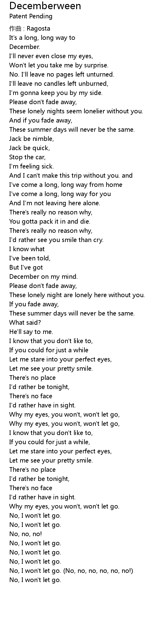 | Please don' t fade away, | |