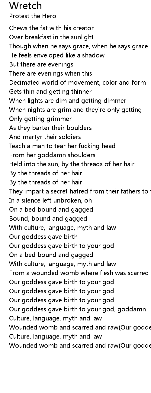 Wounded womb and scarred and raw(Our goddess gave birth to your god) |