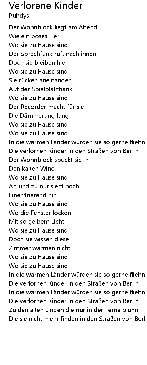 | Die sie nicht mehr finden in den Stra en von Berlin. |