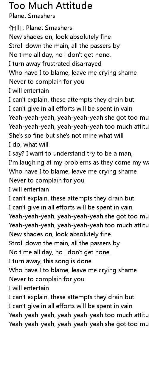 | Yeahyeahyeah, yeahyeahyeah too much attitude, | |